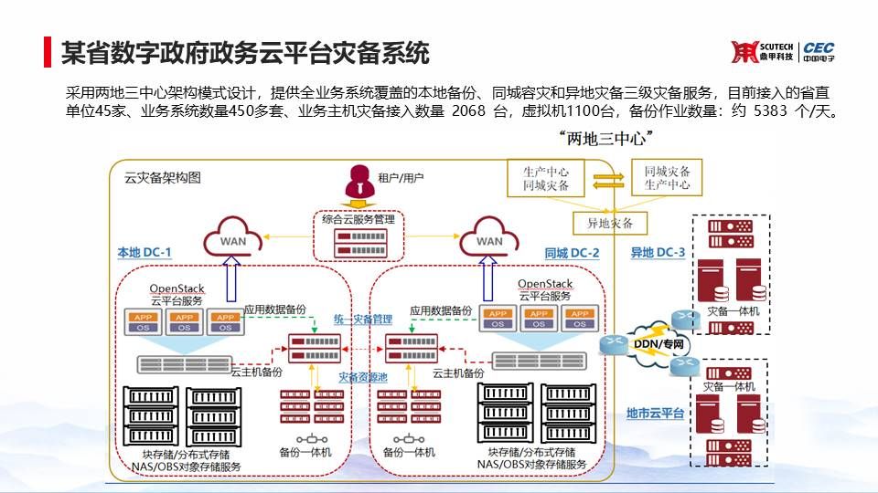 像某省電信的省級資源池的話,它包含不同的虛擬化平臺,我們鼎甲在這么多種云平臺底下,都能夠實現對所有數據的備份數據恢復和管理。