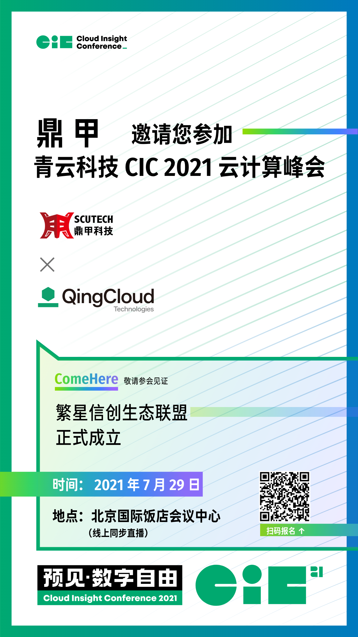 7月29日,青云科技CIC 2021云計算峰會在京舉行,作為青云科技的重要合作伙伴,鼎甲將受邀出席,與眾多行業大咖預見數字自由,探索數字賦能新方向。