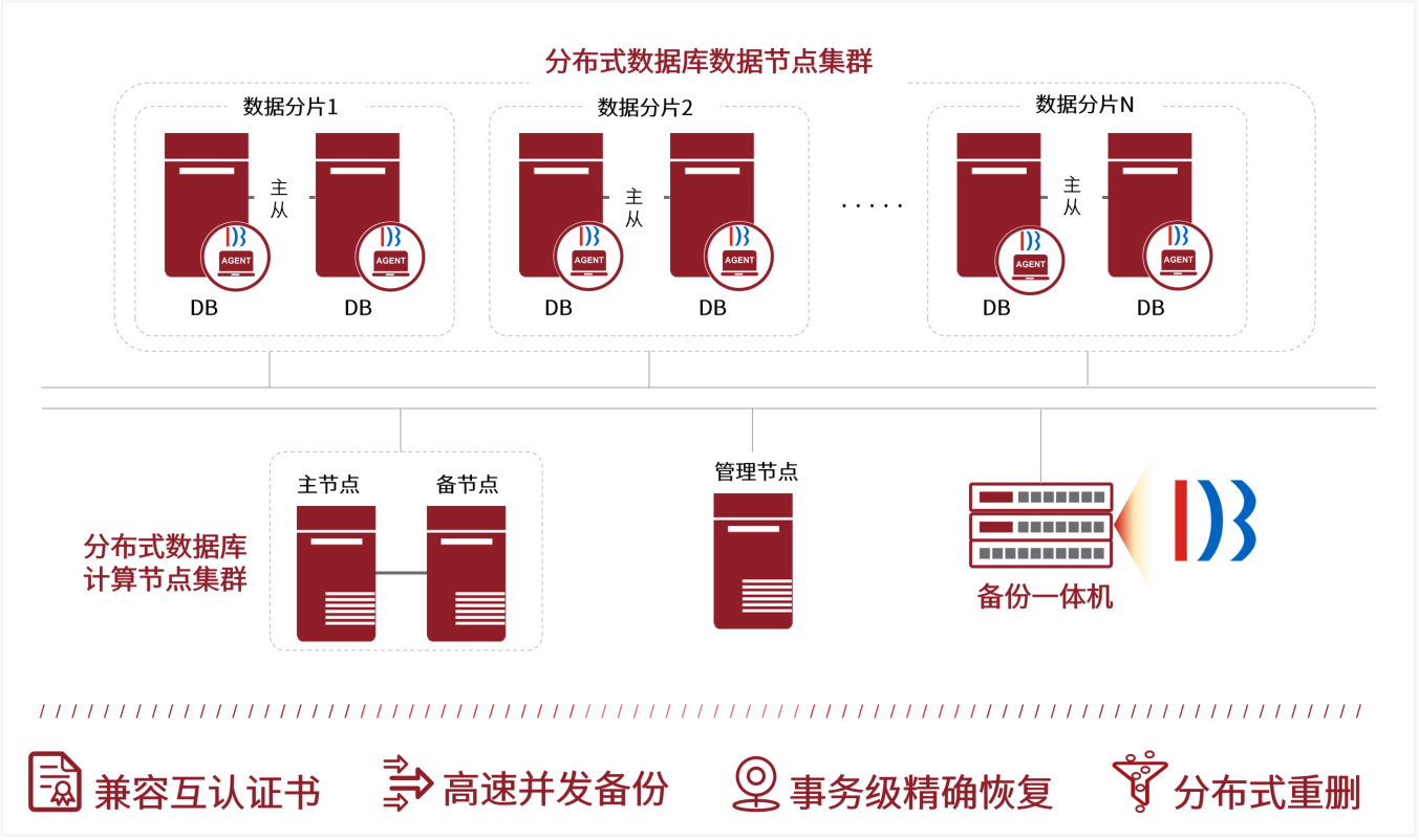 GoldenDB 數據庫是中興通訊的金融級交易型分布式數據庫,HotDB Server 是熱璞科技的一款實現數據容量和性能橫向擴展的交易關系型分布式事務數據庫產品。DBackup 新版本同時推出 GoldenDB 和 HotDB Server 的備份恢復功能,更拿到了 GoldenDB 產品兼容性互認證明,獲得原廠認可!