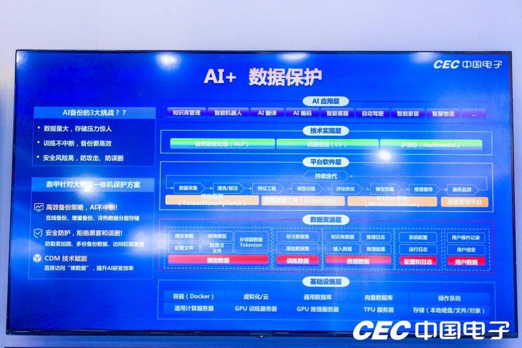面對大模型一體機的海量數(shù)據(jù)和高風險挑戰(zhàn),鼎甲展示了 AI 數(shù)據(jù)保護方案,具備以下三大優(yōu)勢: